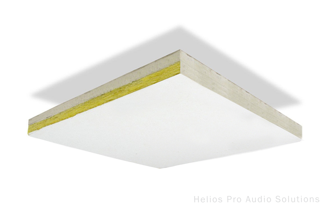 Primacoustic ThunderTiles combine high density 6lb glass wool with ½ gypsum board. The visible face features a decorative tissue with a painted latex finish. The acoustic tile is fully encapsulated in micromesh and edges are sealed to eliminate dusting during handling.