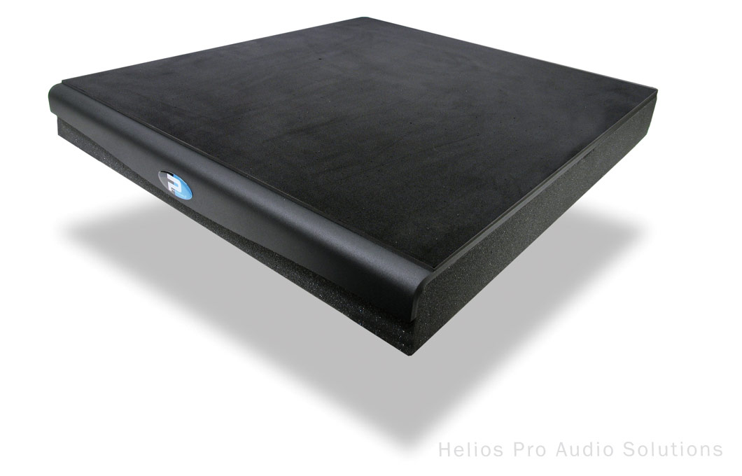 components: a high-density urethane foam base to isolate the speaker from the shelf, monitor-bridge or stand; a heavy ¼” laser-cut steel plate; and a thin neoprene top surface. The foam effectively decouples the loudspeaker to eliminate vibration-borne resonance that invariably introduces phase anomalies, while the steel plate introduces significant mass to the structure, stabilizing the speaker. The no-slip surface coats the top to ensure the monitor stays firmly in place.