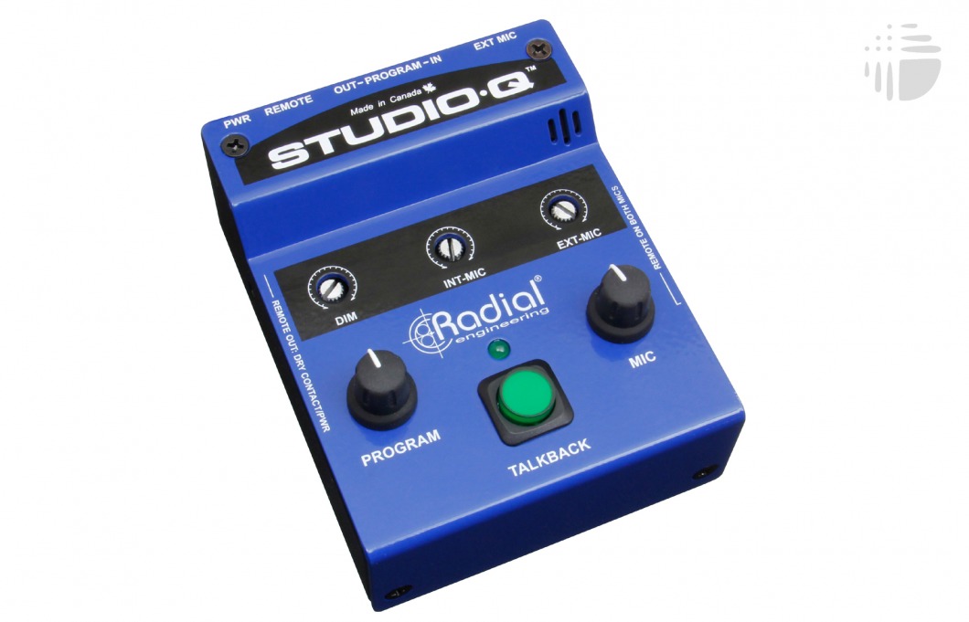 The Studio-Q begins with a simple cue switch that turns on the built-in microphone or the producer mic XLR input. Each mic is equipped with an individual trim control along with a master mic volume. These can also be remotely activated using a remote JR1 mute footswitch. Once depressed, the signal is routed to the studio headphone system while it automatically shunts the program to the desired level. The program signal path is balanced for easy integration with any console with fully variable level control on the front panel. When the band is full-on, a remote output may be used to send a dry contact to a beacon and attract attention. This can also be set with DC power to accommodate a soon to be released LED beacon.