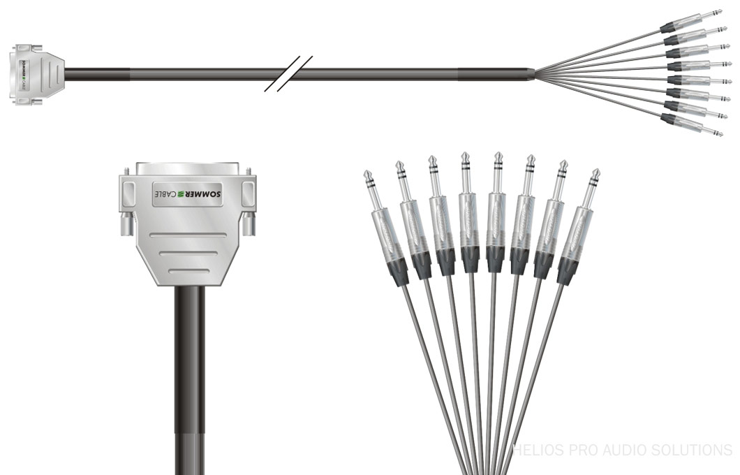 For analog SUB-D cabling we use 8-pair flexible multipair SC-QUANTUM HIGHFLEX, insulated in pairs and SubD EMC-conformant solid metal plug connectors.