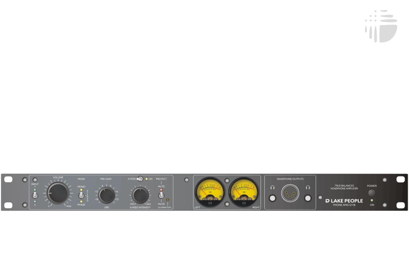 The Lake People PHONE-AMP G118 is a balanced headphone amplifier based on the circuits of the approved and valued PHONE-AMP G111 but in a 19“, 1 U case. Besides the outstanding reproduction qualities G118 offers a Mono / Stereo / Phase-Reverse switching, Pre-Gain on the front panel, X-FEED and a VU-Meter for level control.