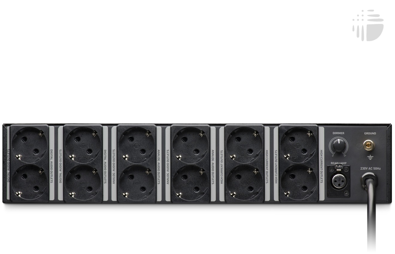 The PG-2 features a bank of 12 switched, filtered and surge protected outlets on the back panel — combined into four groups (Digital Audio x2, Analog Audio, and High Current). The Analog Audio and High Current outlets are time delayed, always ensuring that your speakers and power amplifiers are the last to turn on, and the first to turn off — this prevents the dreaded “pop” that can occur if speakers receive power at the same time as your sound sources. The PG-2 also features 2 filtered convenience outlets, and a USB charger on the front panel, as well as XLR lamp connectors on both the front and back panels.